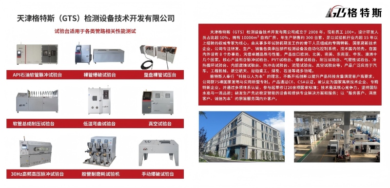 公司核心产品有:脉冲试验台、PVT试验台、爆破试验台、冷热循环试验台、内部腐蚀试验台、热冲击试验台、耐压试验台、气密性试验台、扭振试验台、真空试验台、挠曲试验台等一系列非标检测设备,所有产品均通过CE、CSA认证,在北美、欧洲、中东、东南亚、澳洲均有应用案列。格特斯至今已获得七十余项专利和荣誉证书,参与起草修订二十余项相关国家标准,我们将持续引领行业技术,致力于研发先进、稳定、智能、安全的检测设备,竭诚为每一位客户服务。